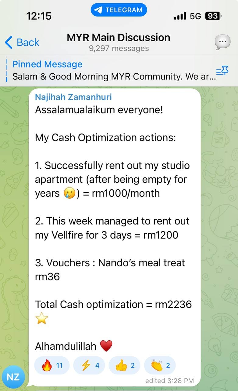 “Within 2 weeks ini juga saya berjaya tingkatkan my positive cashflow from RM210 ➡️ RM810 with cashflow optimisation.” – Muneerah